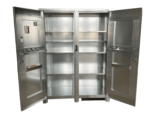 on both doors. - Slam latches with locks are standard on all cabinets.